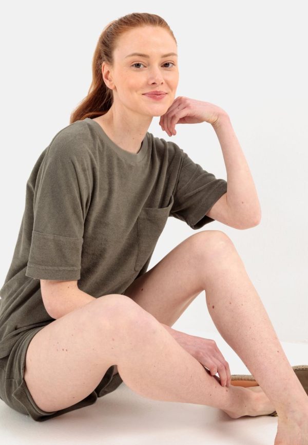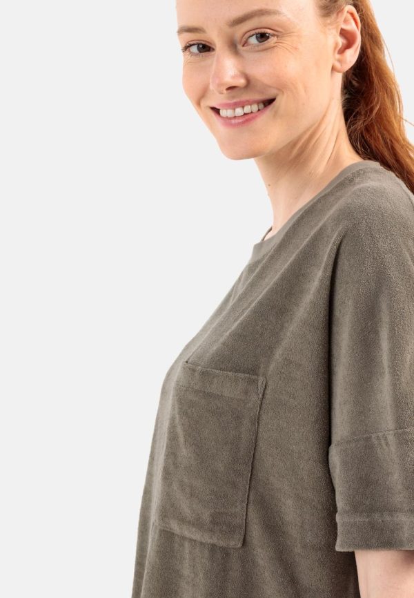 Für optimale Entspannung zu Hause oder unterwegs bietet dieses Kurzarmshirt aus hochwertigem Baumwollmix maximalen Komfort. Der saugstarke Frottee-Stoff überzeugt mit angenehm weicher Haptik und hautfreundlichen Eigenschaften. Der Relaxed Fit mit überschnittener Schulter garantiert eine lässige Silhouette für unbeschwerte Bewegungsfreiheit. Die praktische Brusttasche auf der linken Seite vervollständigt den funktionalen Freizeitlook. Mit dem charakteristischen camel active Jacron-Label am Saum.