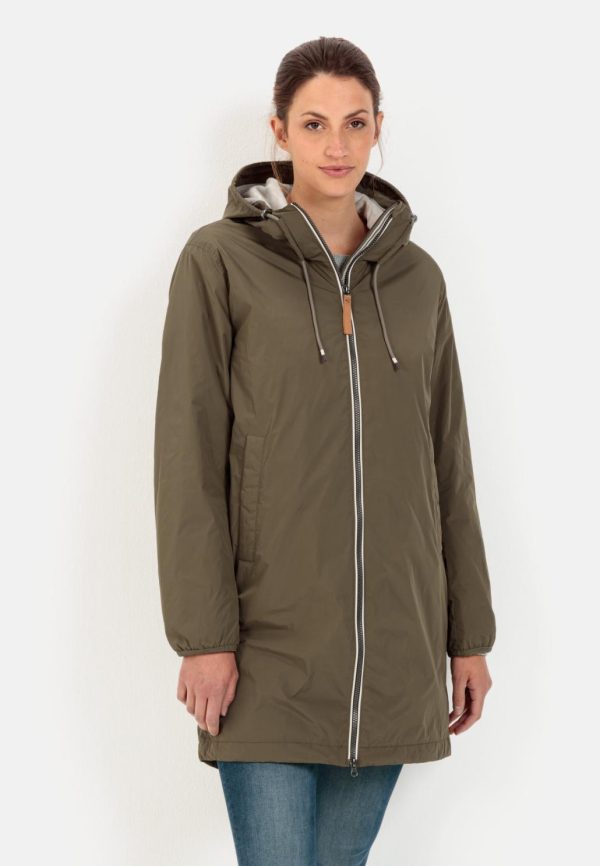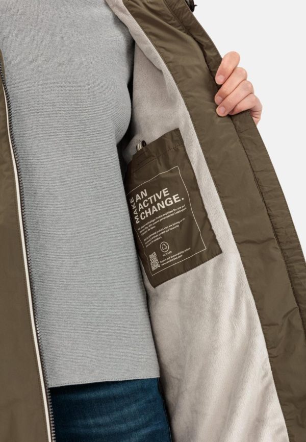 Der daunenfreie Funktionsmantel aus recyceltem Polyester bietet dir eine optimale Voraussetzung, um bei jedem Wetter draußen zu sein. Das Material aus recycelten Fasern ist von außen mit wasserabweisenden und winddichten Funktionen ausgerüstet. Von innen wärmt dich ein weiches Futter aus kuscheligem Plüsch. Relaxed Fit, fixierte Kapuze, 2 Wege Reißverschluss und Leistentaschen mit verdeckten Druckknöpfen komplettieren den Parka um praktische Details. Am linken Ärmel ist ein camel active Label angebracht.