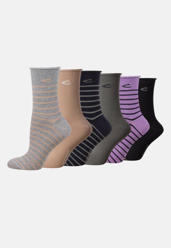 Mit diesem Set aus anschmiegsamen Socken fügst du deinem Kleiderschrank ein praktisches Basic hinzu. Enthalten sind sechs Paare aus einem weichen Baumwollmix in verschiedenen Farben. Durch den Stretch-Anteil im leicht gerippten Gewebe passt sich der Bund gut an. Die Socken sind mit einem hohen Schaft und einem umlaufenden Streifenmuster ausgestattet. Am Bund und auf der Sohle sitzt ein camel active Logobranding.