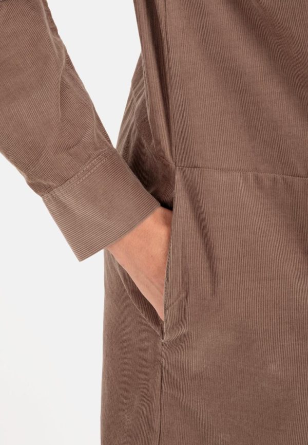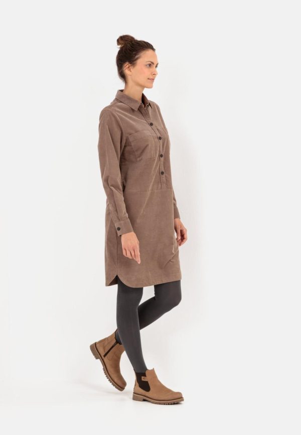 Stilvolles Hemdblusenkleid mit lässig-elegantem Design. Die hochwertige Baumwolle in veredelter Feincord-Qualität garantiert optimale Trageeigenschaften und zeitlose Eleganz. Der Baumwollcord bietet ausgezeichnete Atmungsaktivität, hervorragende Feuchtigkeitsaufnahme und überzeugt durch seine robuste, pflegeleichte Qualität. Das Cordkleid mit funktionalen Brusttaschen und praktischen Seitentaschen ist mit klassischem Hemdblusenkragen und formvollendeten Langarm-Manschetten ausgestattet. An einer der Taschen ist das charakteristische camel active Markenlabel angebracht.