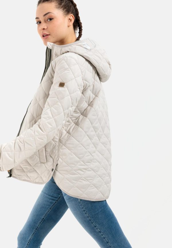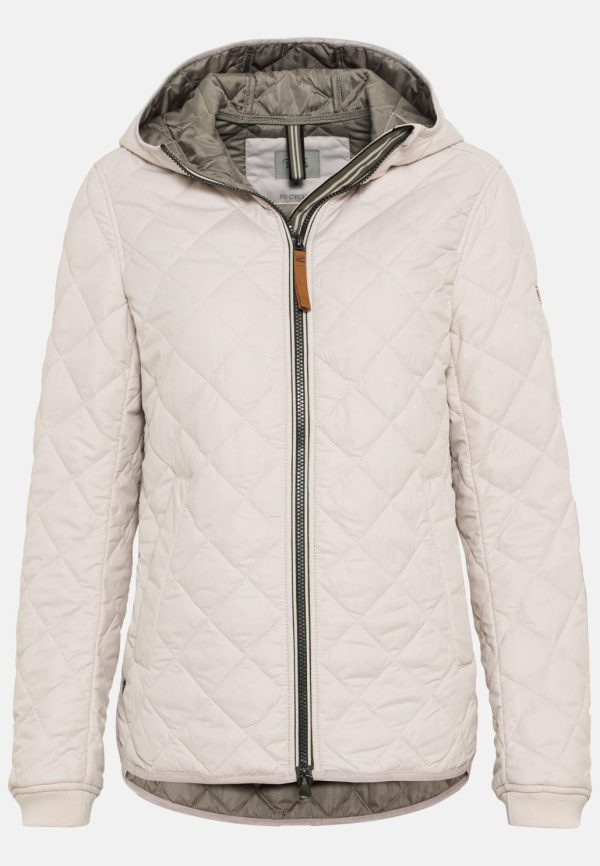 In der nasskalten Übergangszeit darf diese bequeme Steppjacke aus recyceltem Polyester nicht fehlen. Sie verfügt über ein wasserabweisendes, winddichtes Obermaterial und ist mit einer daunenfreien Wattierung ausgekleidet. Mit der taillierten Passform sieht die Jacke feminin und modern aus. Der Rand der Kapuze ist mit einem tonalen, reflektierenden Schriftzug bedruckt. An den Armabschlüssen sorgen gestrickte Bündchen für optimalen Sitz.