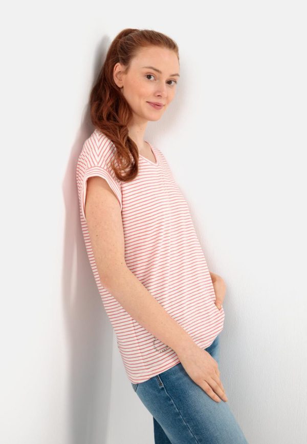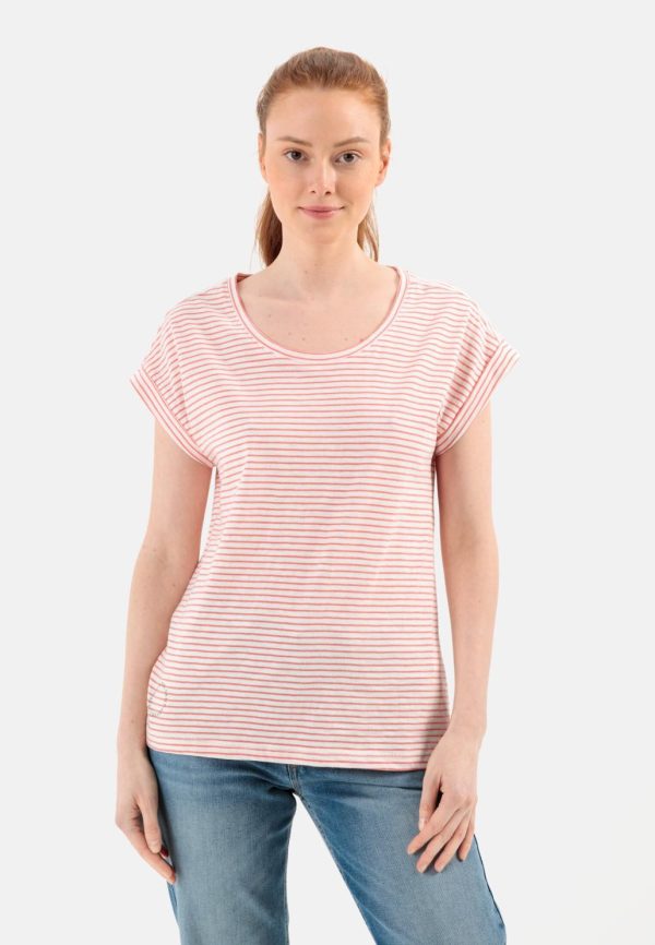Damen Kurzarm Shirt Im Streifenmuster Weiß-rot | Camel Active T-Shirts & Polos