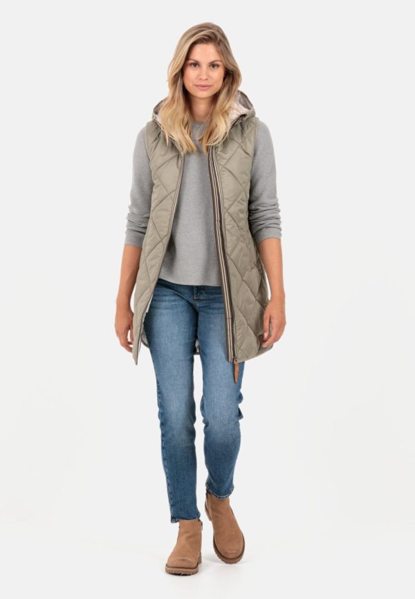 Diese gesteppte Longweste aus zeitgemäß recyceltem Polyester passt perfekt in deine herbstlichen City und Outdoor Styles. Das wasserabweisende und winddichte Funktionsmaterial ist daunenfrei wattiert und wärmt so mit der Leichtigkeit recycelter Kunstfasern. Die lang und relaxed geschnittene Weste ist mit Kapuze, gerundetem Saum, knöpfbaren Seitenschlitzen, Leistentaschen und einem 2-Wege-Zipper ausgestattet. Ein camel active Label ist auf der Front zu sehen.