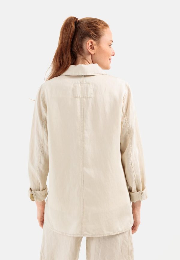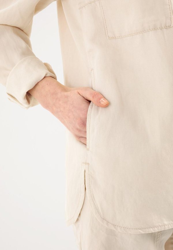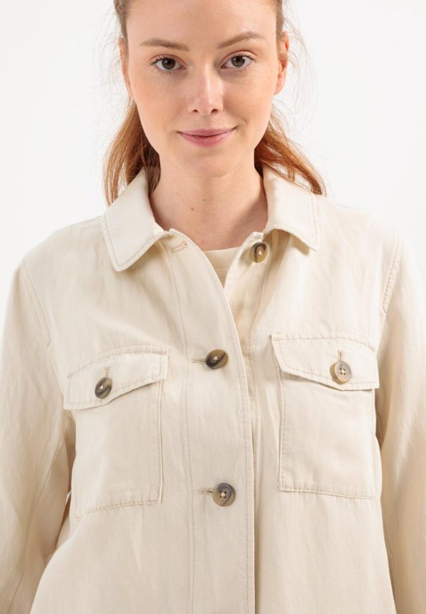 Diese leichte Sommerjacke besteht aus einem angenehmen Leinenmix. Die natürlichen Fasern verschmelzen mit Lyocell in temperaturregulierendem TENCEL™ Lyocell. Mit ihrem knitterarmen Stoff und dem klassischen Hemdkragen passt das Overshirt im Alltag zu deinen lässigen Looks. Wichtiges für unterwegs findet in zwei seitlichen Einschubtaschen und zwei Taschen auf der Brust Platz. Der abgerundete Saum komplettiert den sportlichen Style.