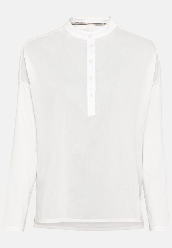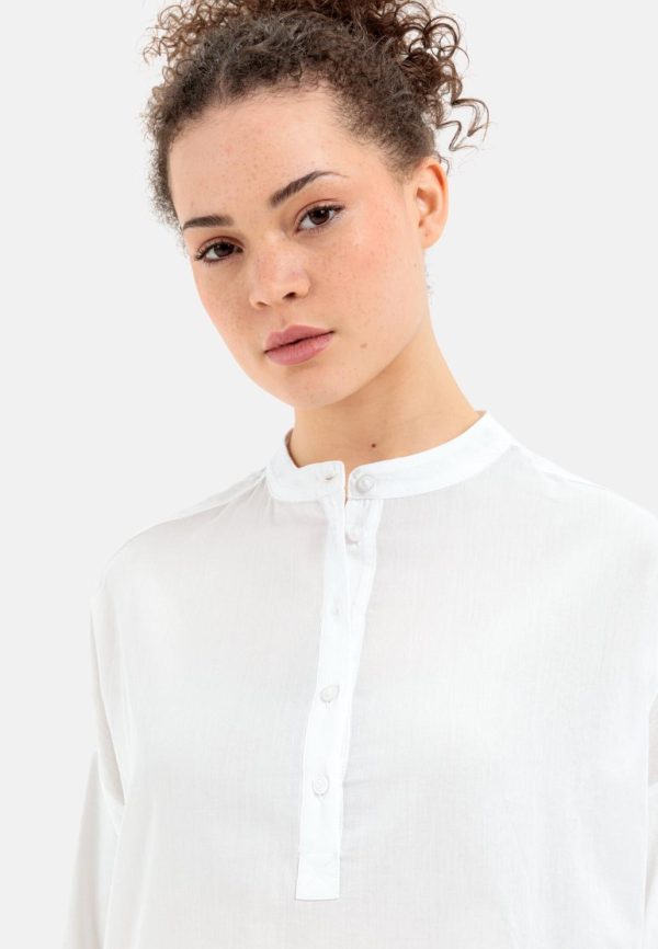 Mit ihrem angenehm weichen Stoff wird diese zeitlose Bluse im entspannten Relaxed Fit dein neues Lieblingsteil. Sie besteht aus reiner, natürlicher Baumwolle mit atmungsaktiver Eigenschaft. Am Hals ist sie mit einem Mao-Kragen im asiatischen Stil sowie einer halben Knopfleiste ausgestattet. Dies verleiht der Bluse einen femininen und modernen Look – passend zu sportlichen und eleganteren Outfits. Mit camel active Markenlabel am Saum.