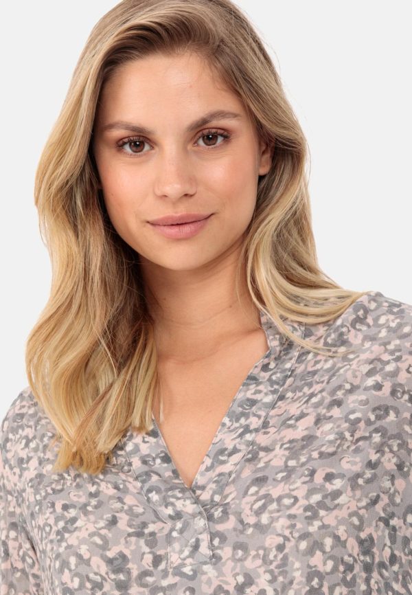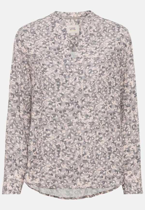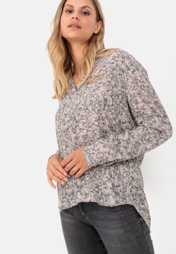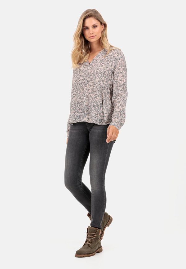 Schlupfbluse mit Stehkragen aus reiner Viskose. Die qualitativ hochwertige Kreppqualität mit feiner Textur zeigt einen modernen herbstlichen Allover-Druck, der diese Regular Fit Bluse zum perfekten Begleiter für kombinierte Looks mit Steppwesten, Jeans und Boots macht. Das anspruchsvolle Design des Mushroom Kuller Prints wird durch den strukturierten Stehkragen, V-Ausschnitt und die Manschettenärmel ergänzt. Der Saum zeigt das camel active Jacron Label für authentische Markenqualität.