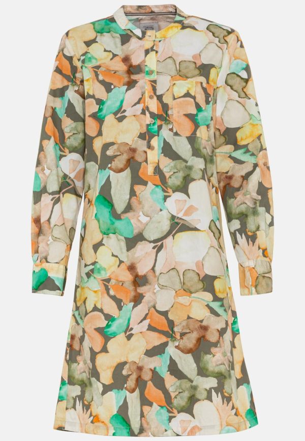 Dieses modische Sommerkleid aus reiner Baumwolle bietet optimale Atmungsaktivität und hautfreundliche Trageeigenschaften. Mit seinem angenehm weichen Griff und den praktisch krempelbaren Ärmeln eignet es sich ideal für den täglichen Einsatz. Funktional ergänzt durch seitliche Eingriffstaschen. Die Kombination aus hochgeschlossenem Kragen und aufgesetzter Brusttasche verleiht dem Kleid einen sportlich-eleganten Charakter.