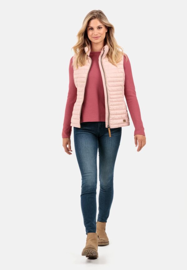 Mit einem durchdachten Materialmix schützt diese Steppweste vor kühlem und unangenehmem Wetter. Der Oberstoff besteht zu 100% aus recycletem, wasserabweisenden Polyamid. Die daunenfreie Fütterung der Steppkammern und der hochstellbare Kragen halten Wind und Wasser zusätzlich ab. Die Weste schließt bis zum Kragenabschluss mit einem Zwei-Wege-Reißverschluss. Durch die leicht taillierte Passform ist ein guter Sitz gewährleistet. Über dem Saum befindet sich ein camel active Logo-Detail aus Leder.