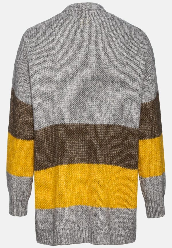 An kühlen Tagen wirst du diesen kuscheligen Cardigan aus angenehmem Materialmix nicht mehr ausziehen wollen. Er ist robust, formbeständig und pflegeleicht. Mit seinem dynamischen Streifenmuster passt der Cardigan zu all deinen modischen Freizeitoutfits. Das vielseitige Kombiteil ist im sportlichen Regular Fit mit gerade auslaufendem Saum geschnitten. Abgerundet wird es durch die rustikale, grob gestrickte Struktur.