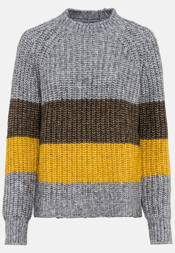 Dieser Strickpullover in Regular Fit bietet optimale Wärmeisolierung an kühlen Tagen. Gefertigt aus einem hochwertigen Materialmix mit recycelten Komponenten für nachhaltigen Komfort. Die spezielle Strickkonstruktion gewährleistet Formstabilität, einfache Pflege und hervorragende Strapazierfähigkeit. Zeitlose Blockstreifen-Designelemente machen diesen Pullover zu einem vielseitigen Basic für Ihre Garderobe. Der klassische Rundhalsausschnitt kombiniert mit der charakteristischen Grobstrick-Optik verleiht ihm eine moderne, feminine Silhouette mit rustikalem Charakter.