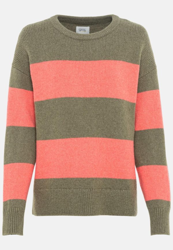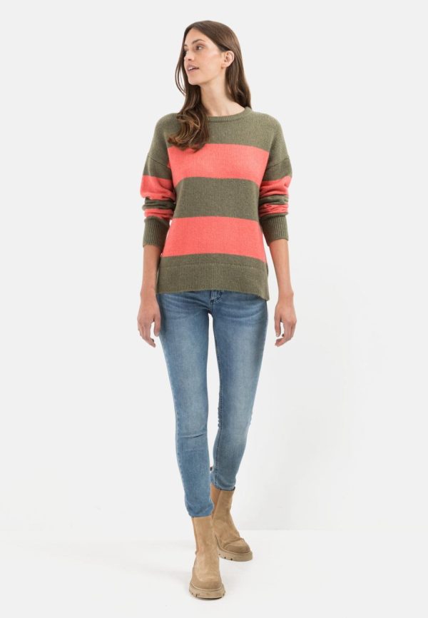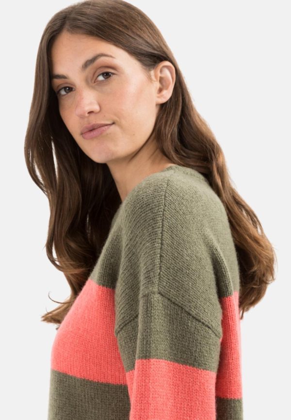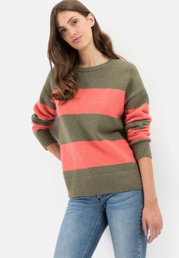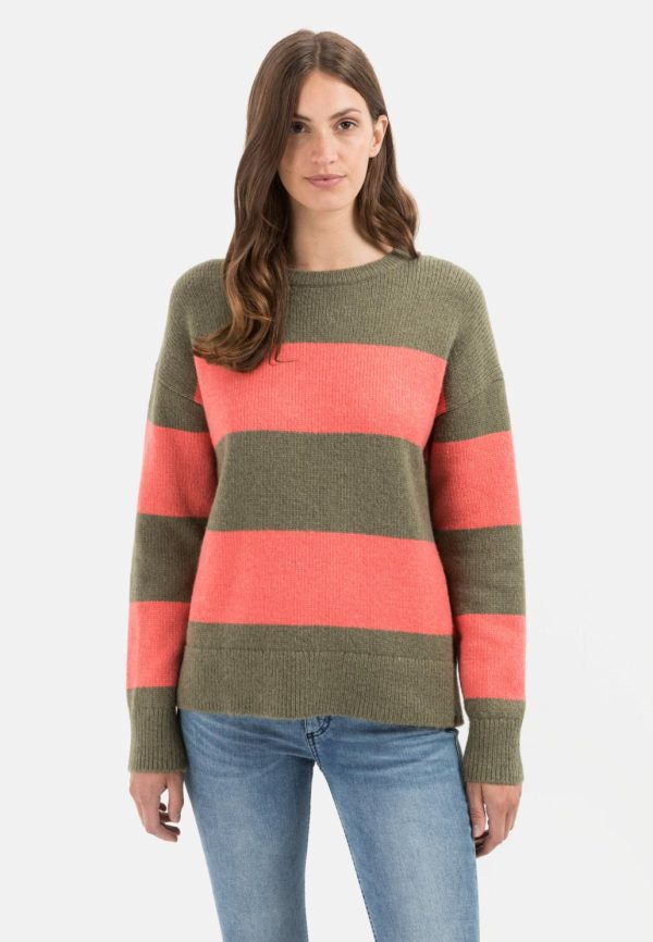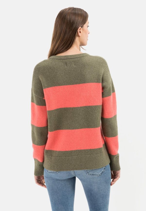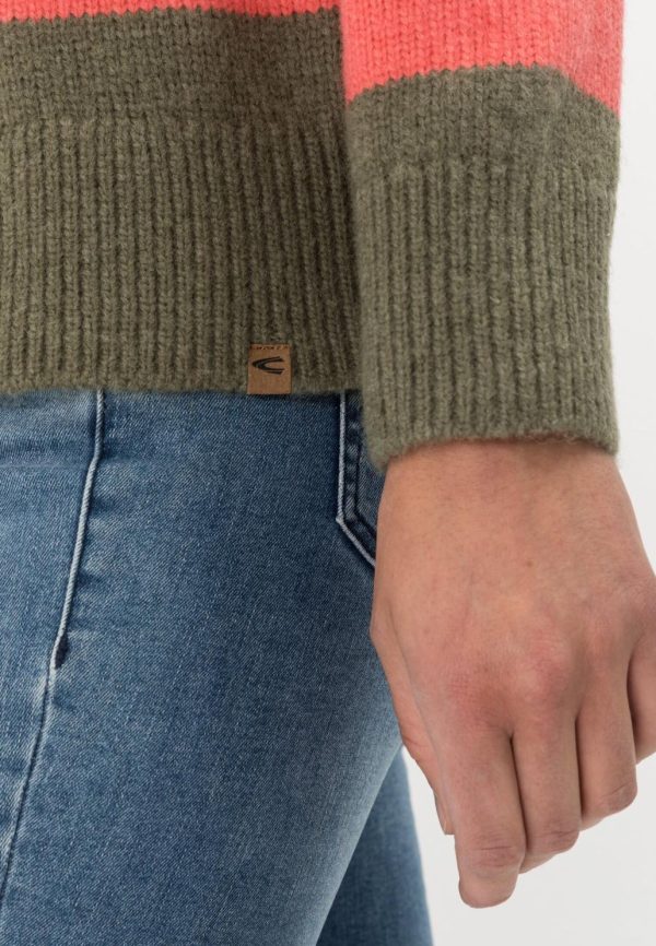 Damen Strickpullover Rundhalsausschnitt Rot-Oliv | Camel Active