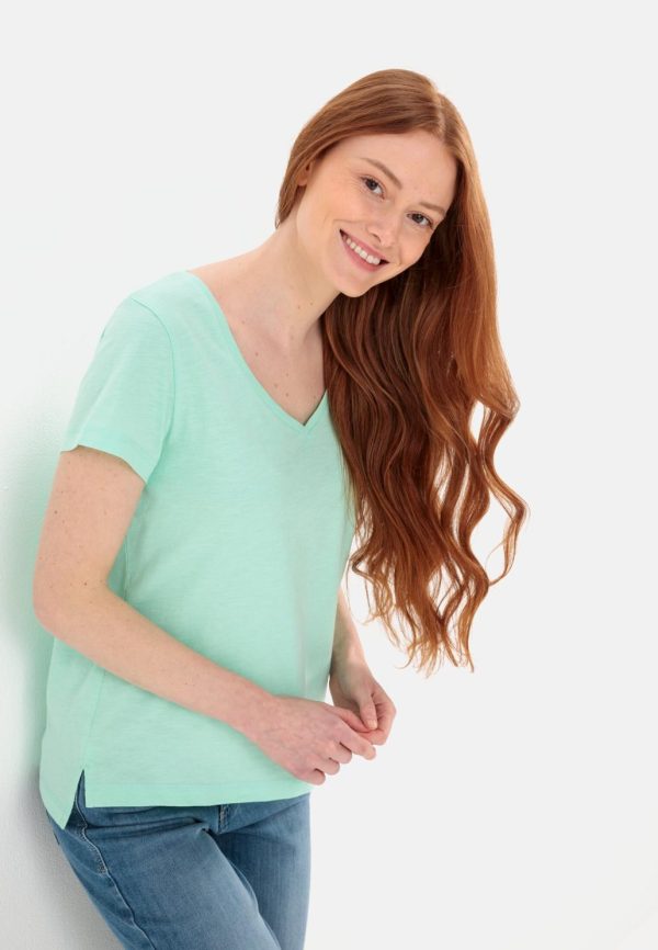 Dieses lässige T-Shirt aus reiner, atmungsaktiver und saugstarker Biobaumwolle passt zu all deinen entspannten Freizeitlooks. Das natürliche Gewebe entspricht der modernen Slub-Jersey-Qualität mit leicht abgetragener Optik. Für einen angenehm lockeren Sitz in jeder Situation sorgt die Passform im entspannten Regular Fit. Mit klassischem V-Ausschnitt und länger geschnittenem Rücken. Am Saum sitzt ein camel active Markenlabel.