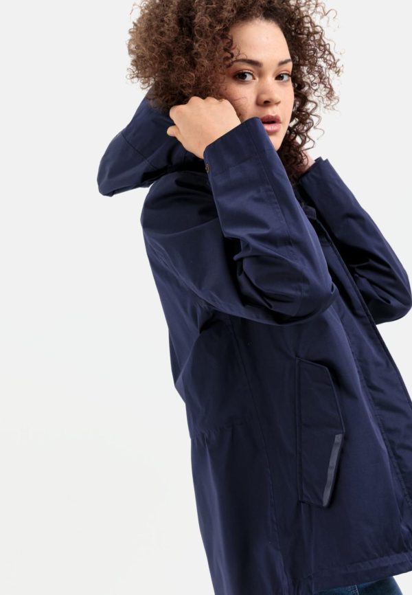 Für diese Jacke kommen angenehme Naturmaterialien und funktionelle Kunstfasern zusammen. Das Resultat ist ein atmungsaktiver Oberstoff mit einem Anteil an Biobaumwolle und einer wasserdichten und winddichten Struktur. Er ist frei von PFC und PTFE. Ein interessantes Detail ist der tonale, reflektierende Print auf der Kapuze. Die wetterfeste Jacke im sportlichen Look ist durch die verschweißten Nähte langlebig und für deinen aktiven Alltag geeignet.