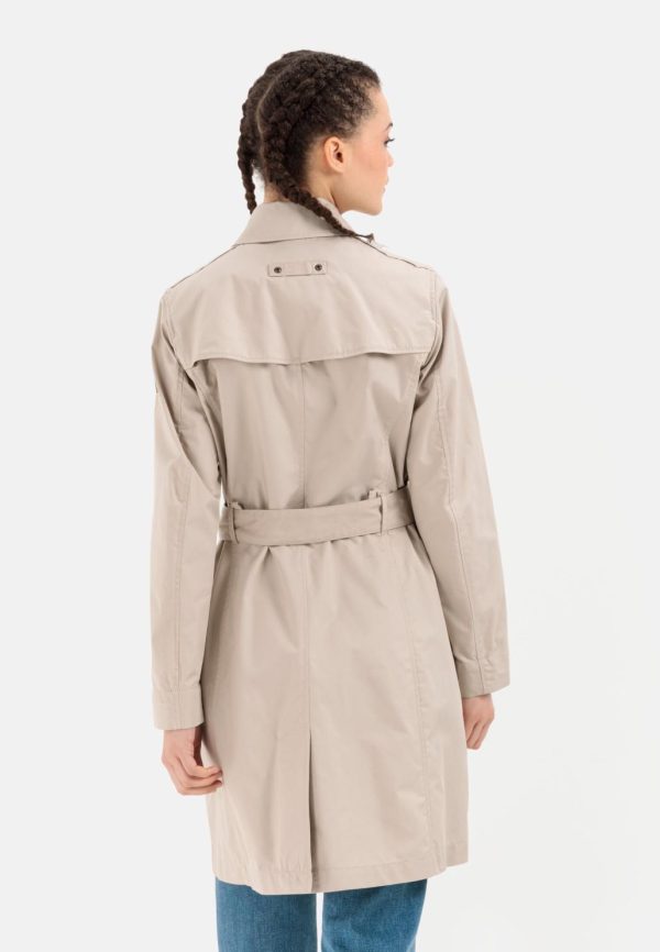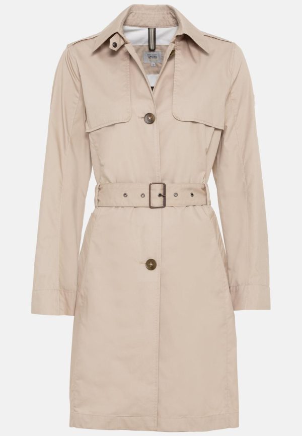 Dieser Mantel aus angenehmem Baumwollmix ist eine sportliche Interpretation des klassischen Trenchcoats. Sein funktionelles Obermaterial ist wasserabweisend, winddicht und pflegeleicht. An der Taille befindet sich ein Gürtel mit modischer Schließe – hier stellst du die Weite flexibel ein. Der Mantel mit femininer Schnittführung wertet deine coolen Looks für den Alltag stilvoll auf. Mit camel active Markenlabel auf dem Rücken.