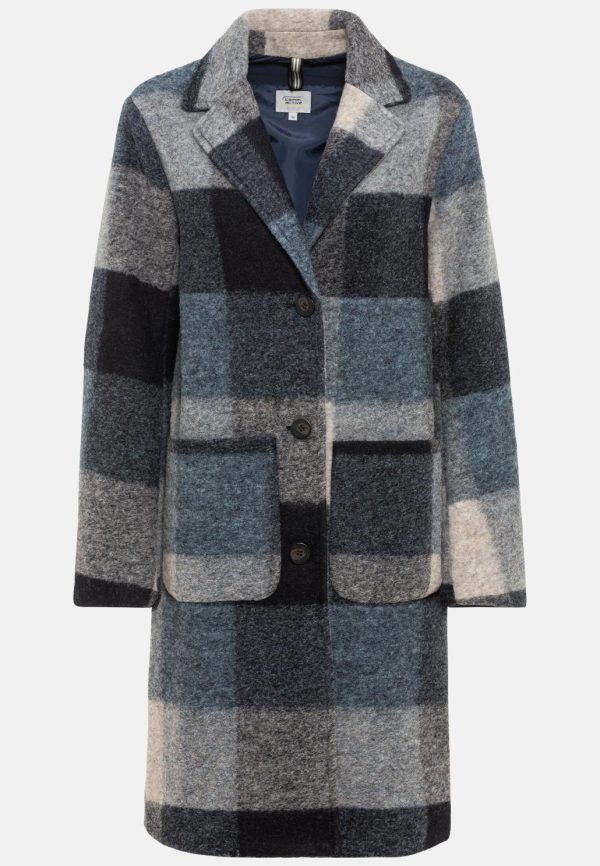 Damen Wollmantel Im Karomuster Blau | Camel Active Jacken & Westen