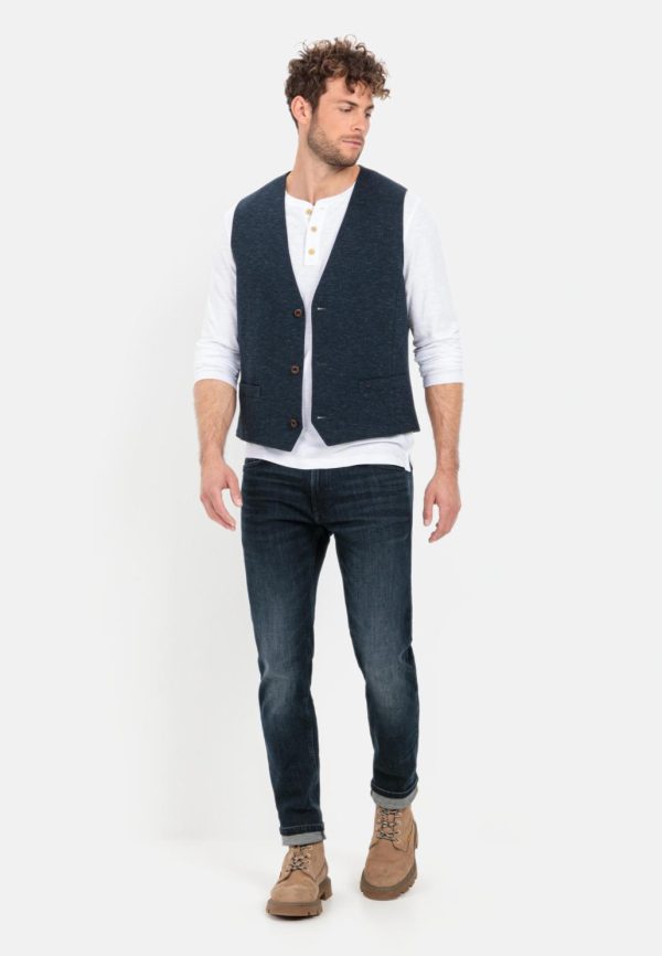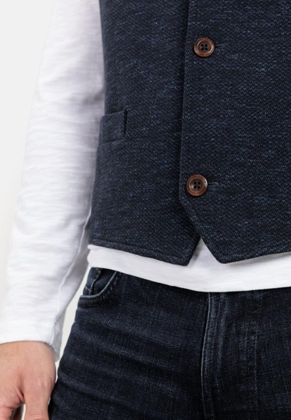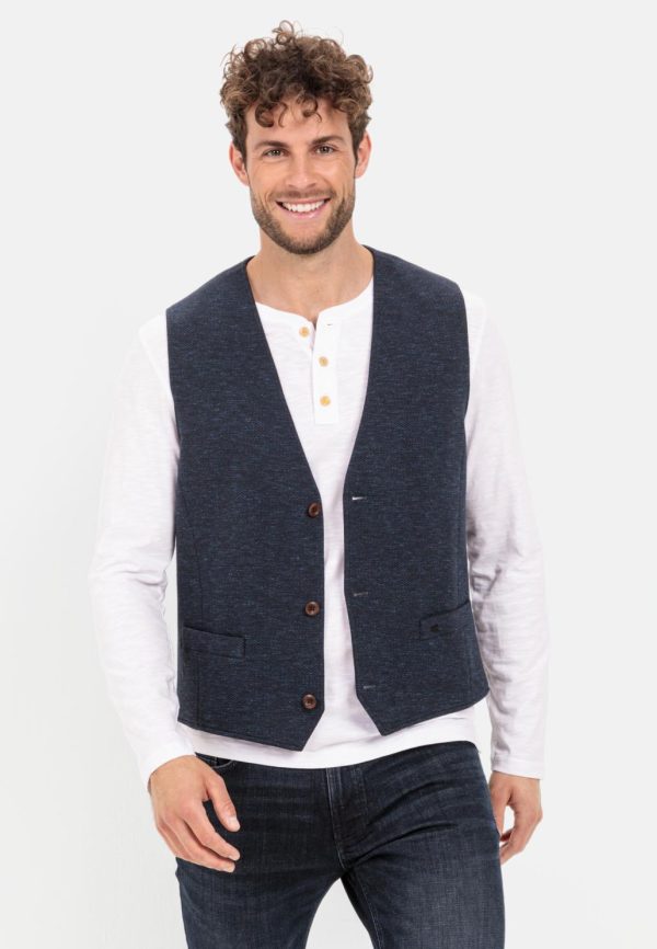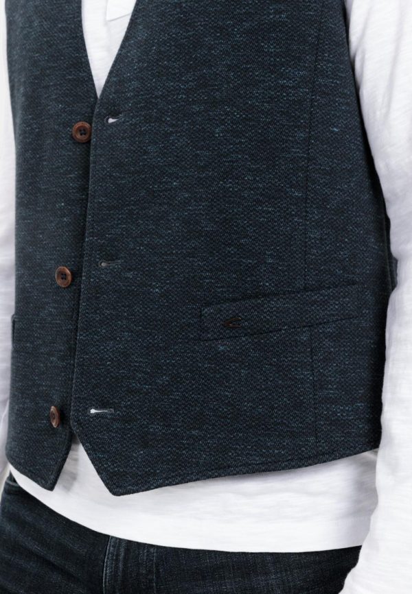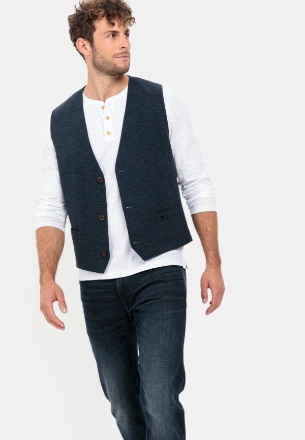 Businesswear wird vielleicht manchmal als steif wahrgenommen, die Anzugweste in cosy Jerseystruktur hingegen widerlegt diese Idee. Sowohl der Regular Fit als auch der bequeme Oberstoff in Optik einer gemütlichen Wirkware sorgen dafür, dass es sich in dem smarten bis eleganten Teil rundum wohlfühlen lässt. Die Weste ist von innen vollgefüttert, sie schließt über 3 Knöpfe und ist an einer der Leistentaschen mit einem camel active Markenlabel verziert.