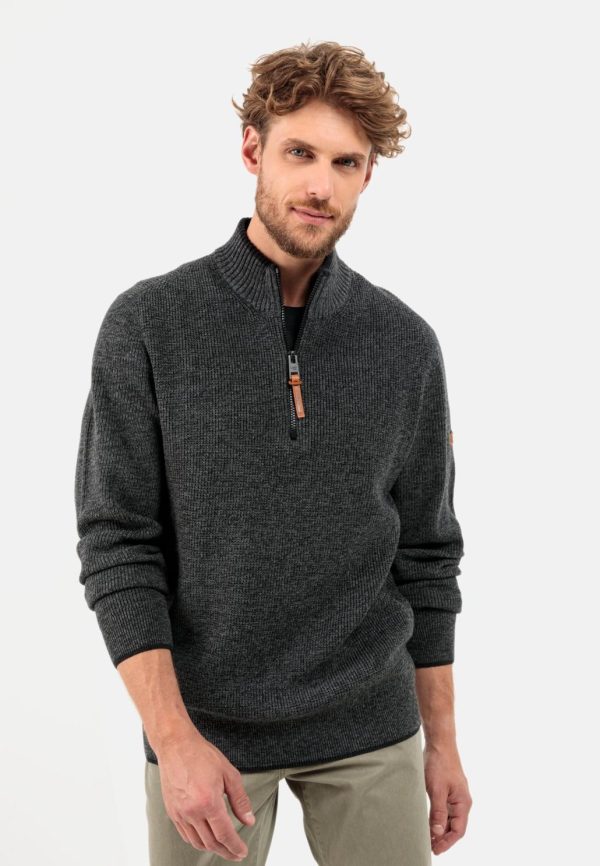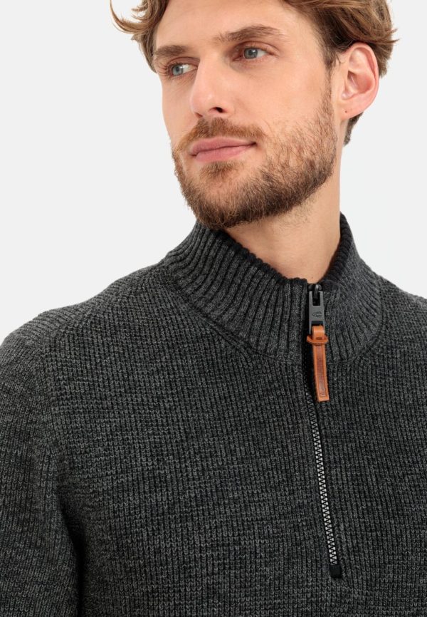 Herren Feinstrick Troyer Aus Baumwollmix Anthrazit | Camel Active Pullover & Cardigan