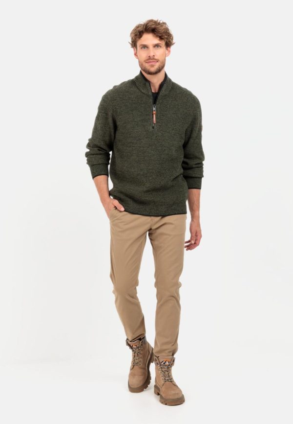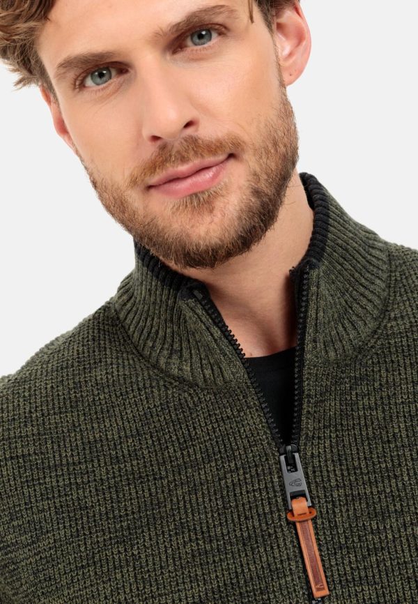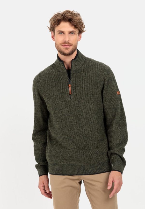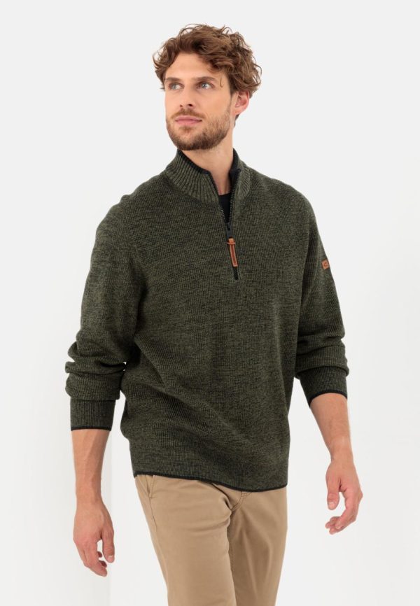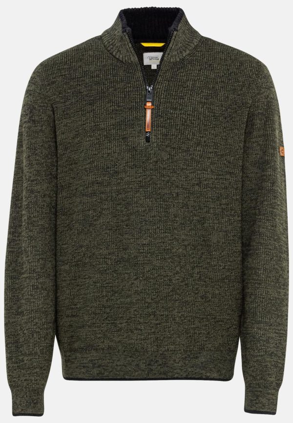 Herren Feinstrick Troyer Aus Baumwollmix Dunkelkhaki | Camel Active Pullover & Cardigan