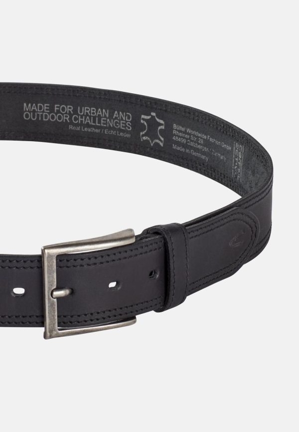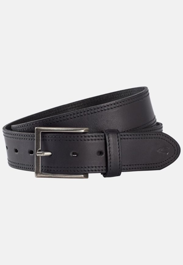 Ob Freizeit oder Outdoor – Dieser robuste Ledergürtel mit markanten Nähten und der schlichten eckigen Schnalle rundet deine Outfits ab. Auf der Spitze findet sich eine dezente Logoprägung von camel active.