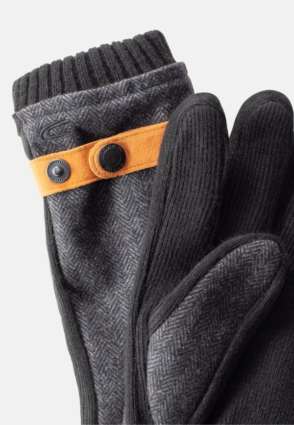 Stylische Alltagsbegleiter für Herbst und Winter – die Handschuhe in hochwertiger Wolloptik und mit coolen Lederriemen. Der Mix aus Fischgrätmuster am Handrücken und Strickqualität mit 50% Wollanteil an der Innenseite machen den spannenden Look dieser Fingerhandschuhe aus. On top geht ein sowohl stylischer wie funktionaler Lederriemen mit Druckknöpfen, ein Strickbündchen sowie eine camel active Logostickerei.