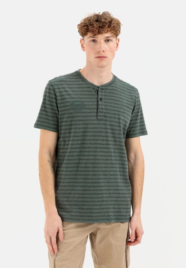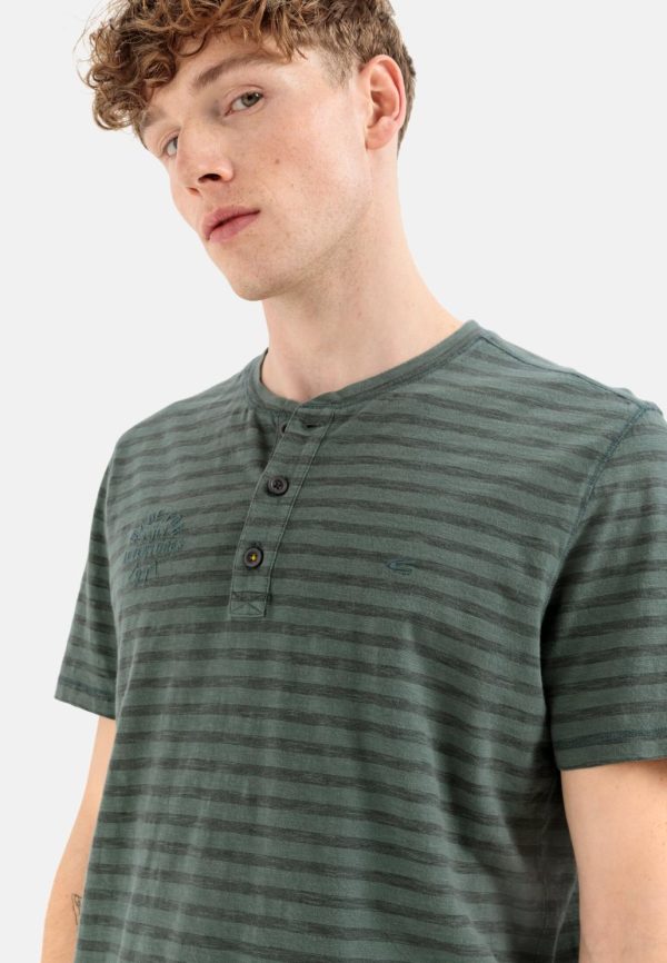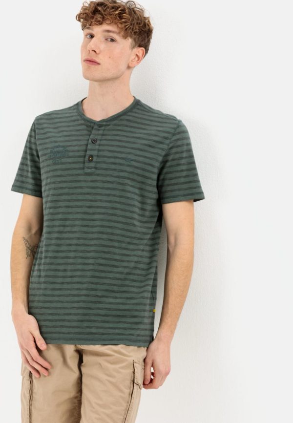 Bei diesem modernen T-Shirt stellt das weiche Material aus reiner Baumwolle ein angenehmes Tragegefühl sicher. Der natürliche Textilstoff nimmt die Flüssigkeit von deiner Haut auf, ist atmungsaktiv und belastbar. Für eine sportliche Optik sorgt der gerade verlaufende Schnitt im lässigen Regular Fit. Im Stil eines klassischen Henley-Shirts ist der Rundhalsausschnitt mit einer kurzen Knopfleiste versehen. Mit camel active Logostickerei auf der linken Brust.