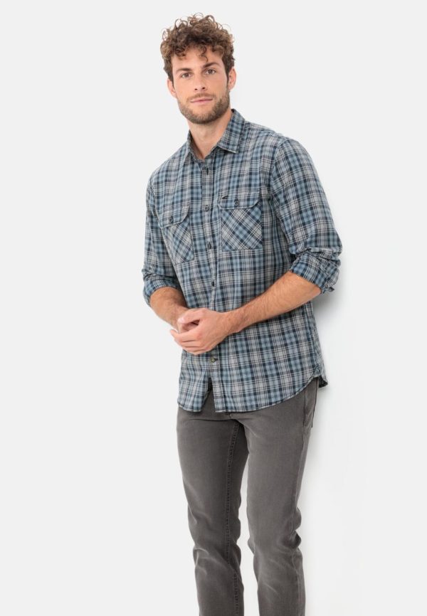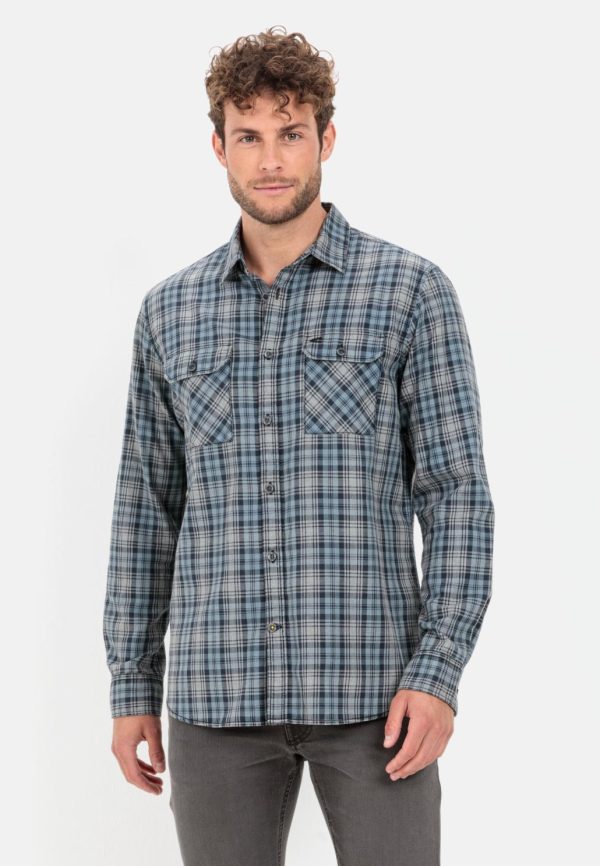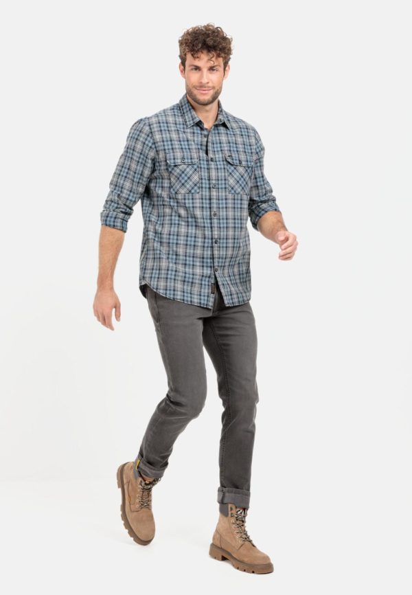 Herren Kariertes Hemd Aus Reiner Baumwolle Blau-grau | Camel Active Hemden