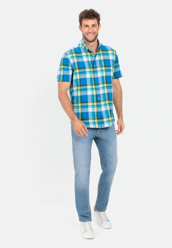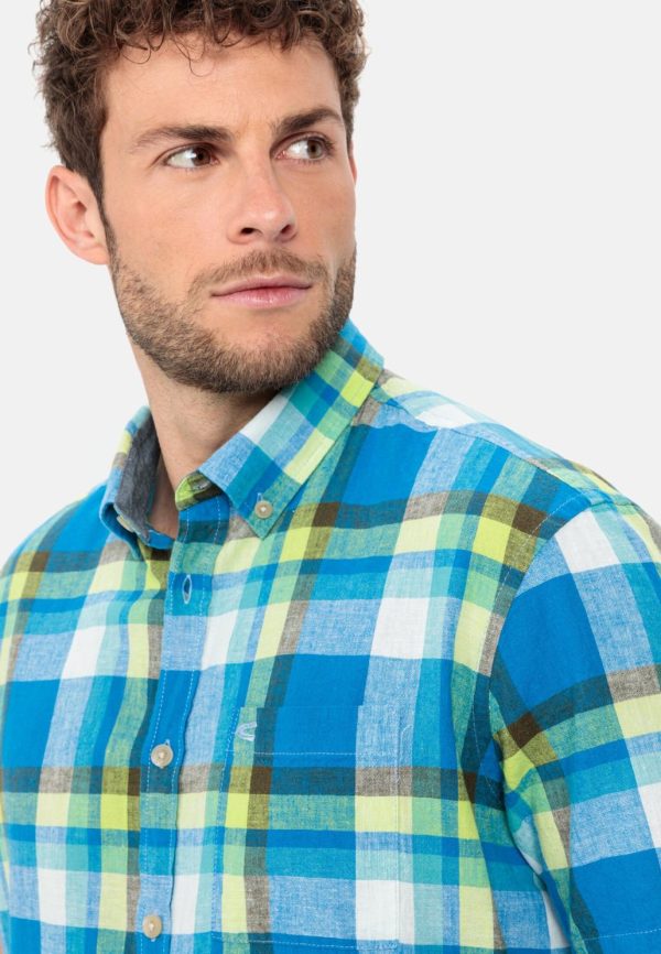 Das kurzärmelige Karohemd aus einem sommerlichen Leinenmix bietet dir an warmen Tagen ein angenehmes Tragegefühl. Durch die Regular Fit Passform ist das karierte Freizeithemd ebenfalls sehr komfortabel. Die smarte Optik ergibt sich durch das Zusammenspiel von Button-down-Kragen, durchgehender Knopfleiste und einer aufgesetzten Brusttasche. Diese ist mit einem kleinen camel active Logo bestickt.