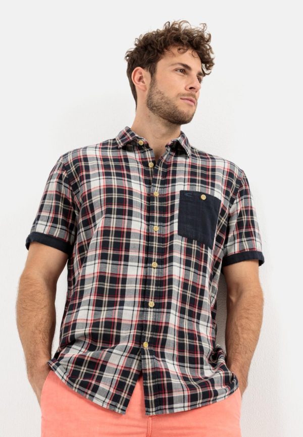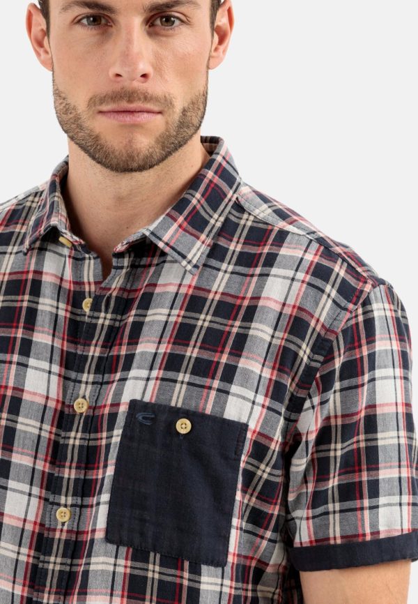 Dynamisch und modern ist dieses hautfreundliche und robuste Baumwollhemd mit mehrfarbigem Karomuster. Die Passform entspricht dem bequemen Regular Fit mit gerade verlaufender Linienführung – für einen ungezwungenen Alltagslook. Besonders ist die kontrastierende Brusttasche mit Knopfverschluss. Der abgerundete Saum und ein klassischer Kentkragen komplettieren das kurzärmlige Hemd. Auf der Brust sitzt eine camel active Logostickerei.
