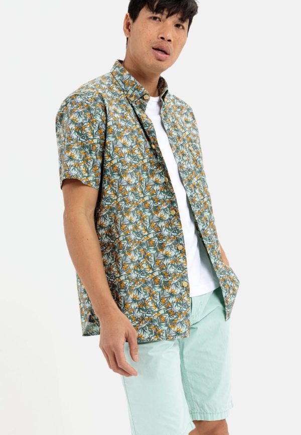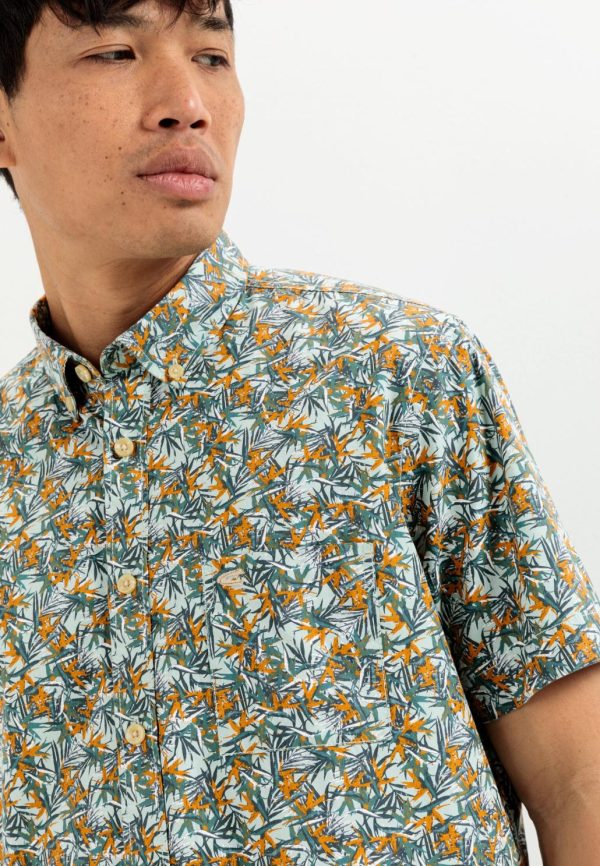 Mit diesem komfortablen Freizeithemd aus Baumwolle bist du modisch und lässig gekleidet. Der natürliche Stoff mit angenehmer Textur ist reißfest, nimmt Feuchtigkeit auf und lässt deine Haut atmen. Am Hals ist das kurzärmlige Hemd im Regular Fit mit einem Button-down-Kragen versehen. Auffällig ist der Allover-Print in floralem Design. Mit camel active Logostickerei auf der linken Brusttasche.