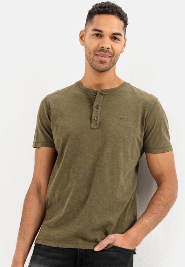 Herren Kurzarm Henley Aus Organic Cotton Dunkel Oliv | Camel Active T-Shirts & Polos