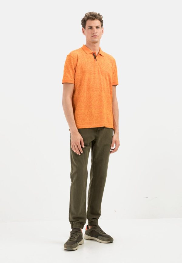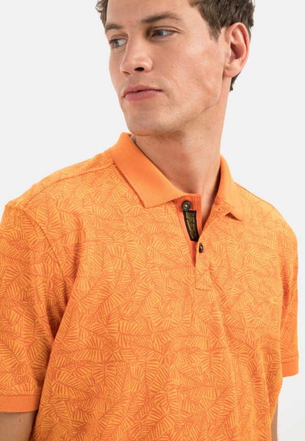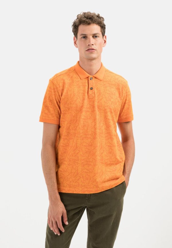 Herren Kurzarm Poloshirt Mit Allover Print Orange | Camel Active T-Shirts & Polos