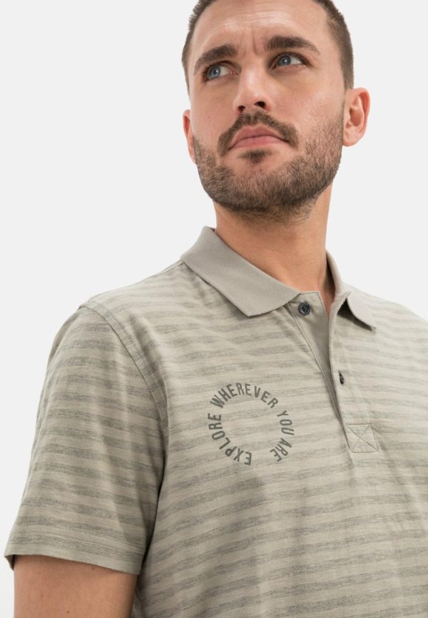 Herren Kurzarm Poloshirt mit Platziertem Print in Khaki Grün | Camel Active