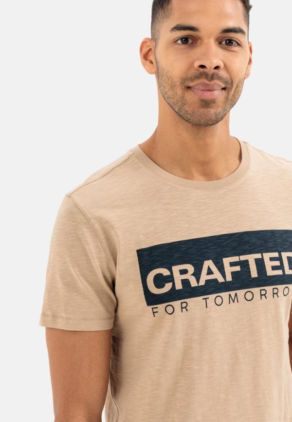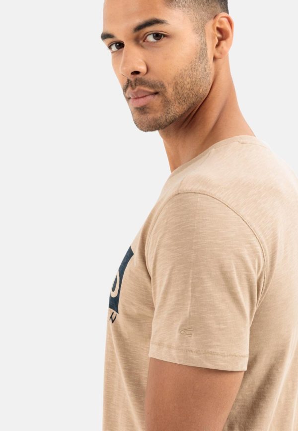 Dieses leichte T-Shirt aus reiner Biobaumwolle wird dein neues Lieblingsteil für Freizeit und Outdoor. Mit seinen hautfreundlichen, atmungsaktiven Eigenschaften und der lockeren Passform im Regular Fit bietet es hohen Tragekomfort. Der platzierte Print auf der Brust macht es dynamisch und modern. Ein klassischer Rundhalsausschnitt betont den sportlichen Style. Auf dem linken Oberarm des Shirts befindet sich eine camel active Logostickerei.