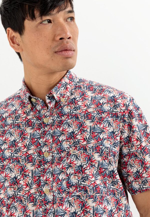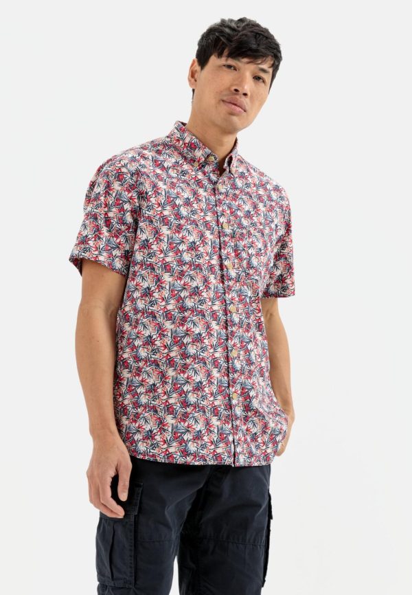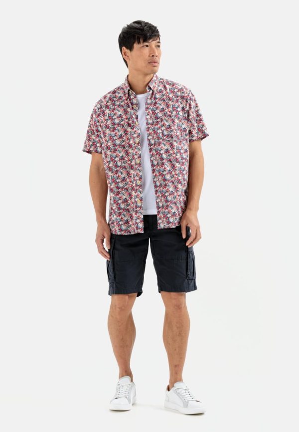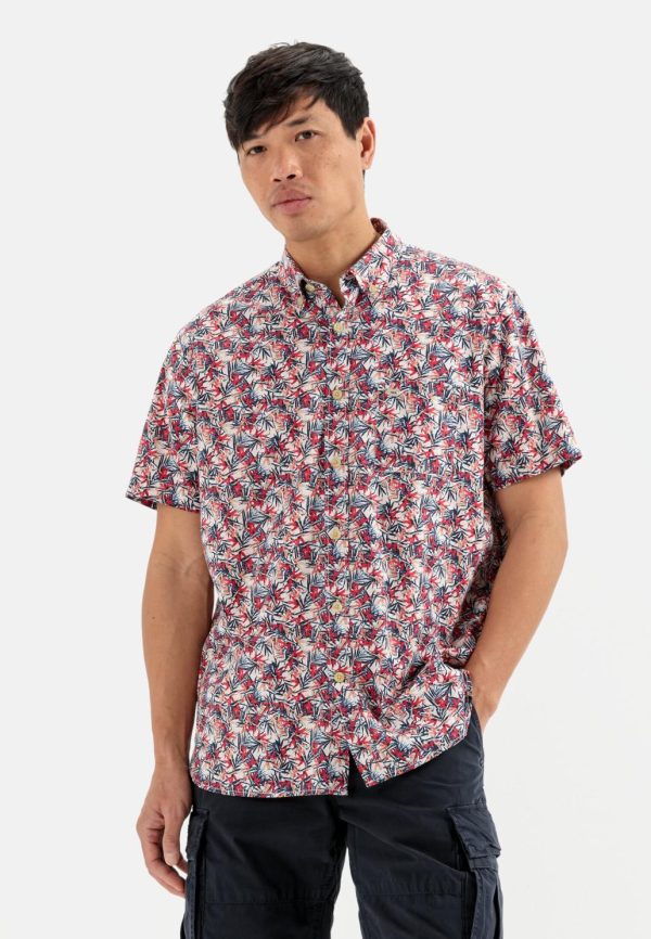 Dieses hochwertige Freizeithemd aus reiner Baumwolle vereist modische Eleganz mit praktischem Komfort. Der natürliche Baumwollstoff überzeugt durch seine robuste Qualität, optimale Feuchtigkeitsaufnahme und ausgezeichnete Atmungsaktivität. Das kurzärmlige Hemd im klassischen Regular Fit verfügt über einen zeitlosen Button-Down-Kragen. Besonders hervorzuheben ist der ansprechende florale Allover-Print, der diesem Hemd einen individuellen Charakter verleiht. Mit der charakteristischen camel active Logostickerei auf der linken Brusttasche.
