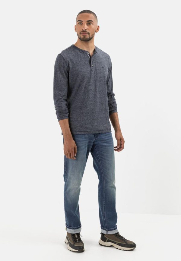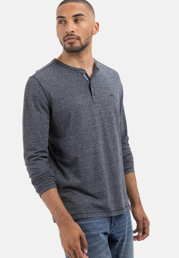 Herren Langarm Henleyshirt Aus Nachhaltigem Baumwollmix Dunkelblau | Camel Active T-Shirts & Polos