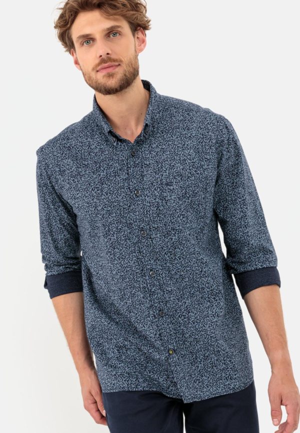 Herren Langarmhemd Dunkelblau Floral Print | Camel Active