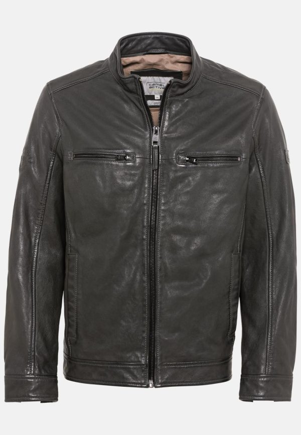 Für alltägliche und außergewöhnliche Looks: Ergänze deine Outfits mit dieser coolen Jacke im ungezwungenen Regular Fit. Ihr Obermaterial besteht vollständig aus langlebigem, widerstandsfähigem und abriebbeständigem Leder. Als Futter dient atmungsaktive Baumwolle mit hautfreundlicher Textur – für hohen Tragekomfort. Zeitlose Elemente der Jacke sind der kurze Stehkragen am Hals und die zwei aufgesetzten Brusttaschen mit Reißverschluss.