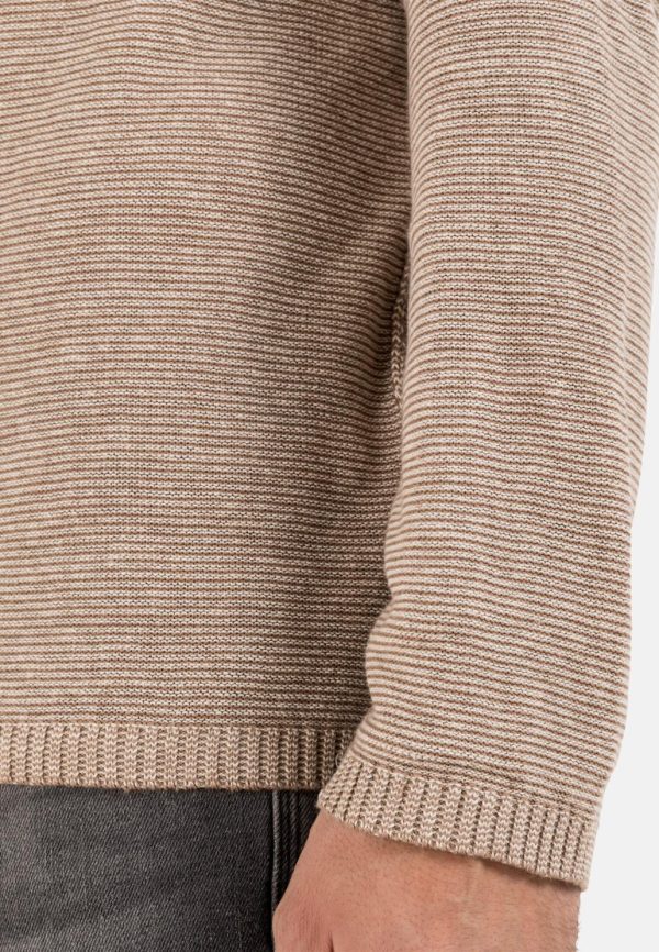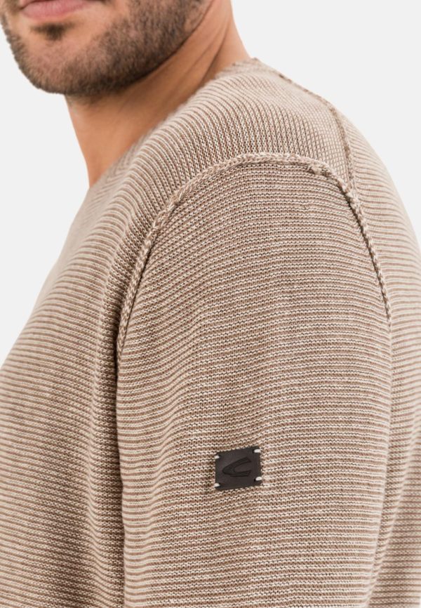 Dieser moderne Pullover für jeden Tag besteht aus einer sommerlichen Leinenmischung. Für ein angenehmes Tragegefühl wurde ein Anteil atmungsaktiver, hautfreundlicher Baumwolle in den robusten Stoff eingearbeitet. Der Pulli ist im lässigen Regular Fit mit gerade auslaufendem Saum geschnitten. Durch die feine Strickqualität kommt das dezente Streifenmuster gut zur Geltung. Mit camel active Markenlabel auf dem linken Arm.