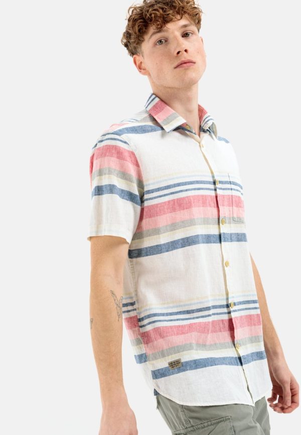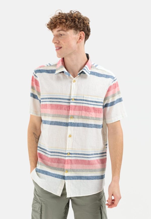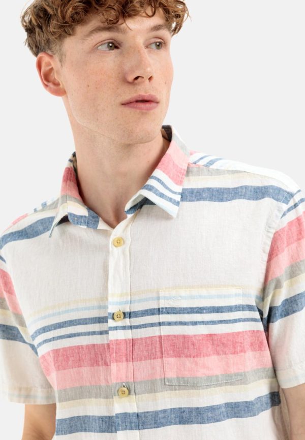 Herren Leinen-Baumwoll Hemd Gestreift Beige | Camel Active