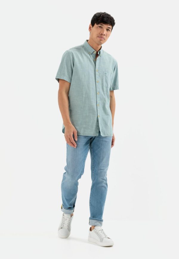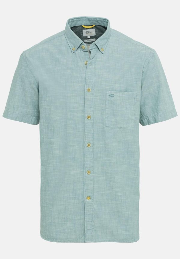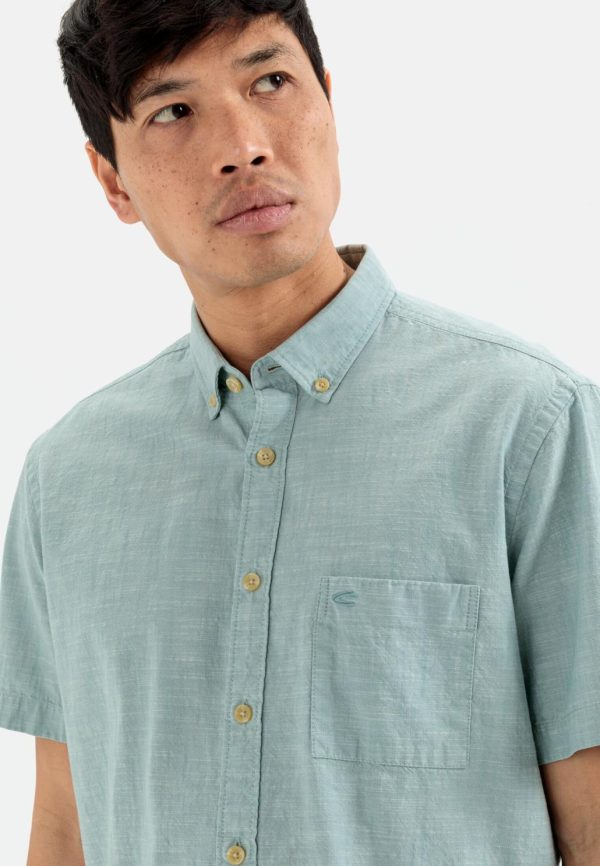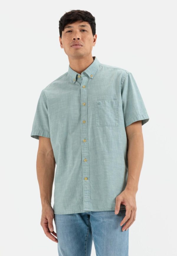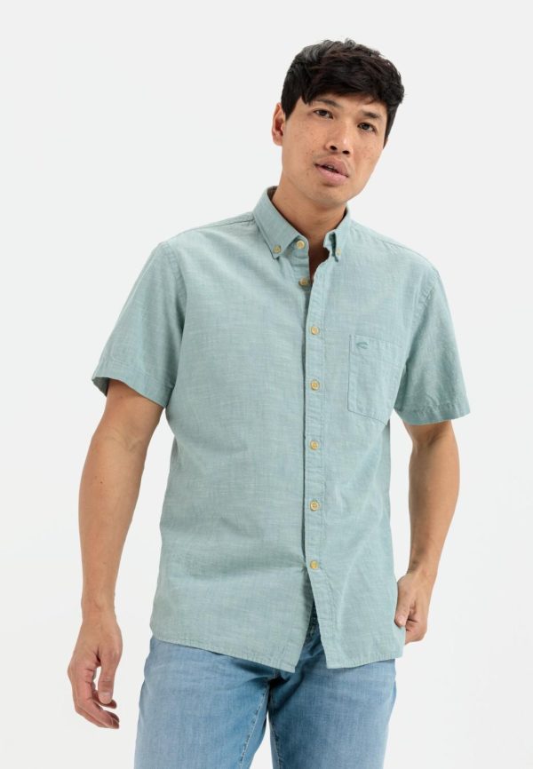 Herren Meliertes Kurzarmhemd Aus Reiner Baumwolle Hellblau | Camel Active Hemden