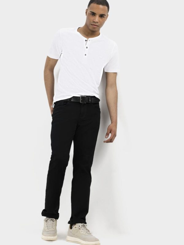 Diese klassische 5-Pocket-Jeans überzeugt durch zeitloses Design und durchdachte Details für den urbanen Alltag. Hergestellt aus einem elastischen Baumwollmischgewebe bietet sie optimale Bewegungsfreiheit und herausragenden Tragekomfort. Der präzise verarbeitete Bund sorgt für perfekten Sitz, während das rückseitige camel active Lederbadge ein markantes Markenzeichen setzt. Ideal kombinierbar mit Sneakern, Hemd und Weste für sportlich-elegante Outfits. Die praktischen Gesäßtaschen bieten zusätzlichen Stauraum für essentielle Utensilien wie Geldbörse oder Smartphone.
