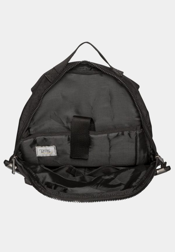- Ein gepolstertes Laptopfach mit Klettverschluss innen und zwei offene Steckfächer innen