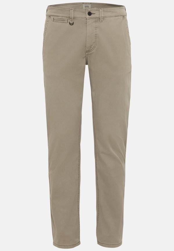 Die Chino Madison aus hochwertigem Baumwollmix vereint sportliche Eleganz mit alltagstauglichem Komfort. Durch den integrierten Elasthan-Anteil bietet sie hervorragende Bewegungsfreiheit dank Zwei-Wege-Stretch-Technologie. Der moderne Slim Fit Schnitt mit schmal verlaufender Beinform sorgt für eine zeitgemäße Silhouette. Die authentische Garment-dye-Verarbeitung verleiht der Chino einen charakteristischen Used-Look mit individueller Optik. Mit exklusivem camel active Branding am Bund.