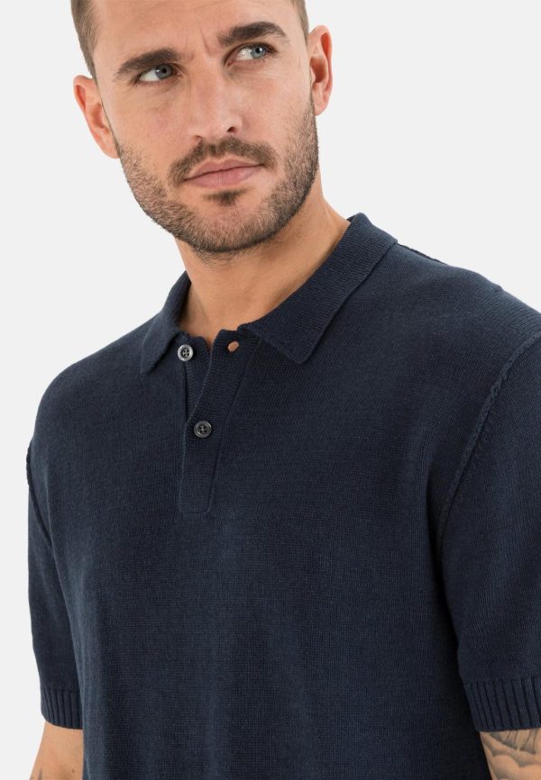 Herren Strick-Poloshirt Im Leinen-Baumwoll-Mix Dunkelblau | Camel Active T-Shirts & Polos