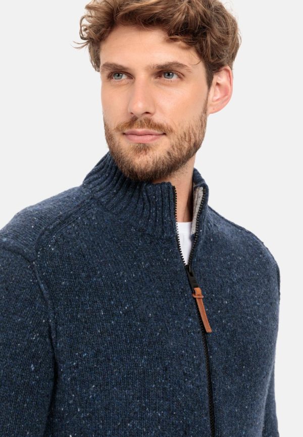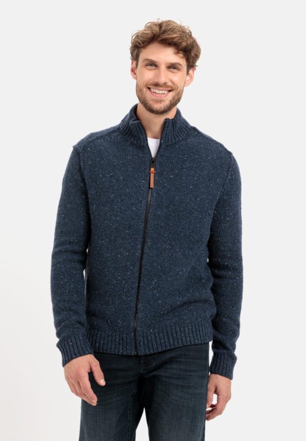 Strickjacke aus einem cleveren Wollmix mit „Tweed“-Effekt und Merino-, Alpaka- und Polyamid-Anteilen. So schenkt dir der Cardigan zuverlässige Wärme bei erhöhter Strapazierfähigkeit und optimierten Pflegeeigenschaften. Die im Regular Fit geschnittene Zipper-Jacke kommt mit sichtbaren Schulternähten und einem innenseitig farblich abgesetzten Stehkragen. camel active Details aus echtem Leder sind an Zippuller und linkem Ärmel angebracht.
