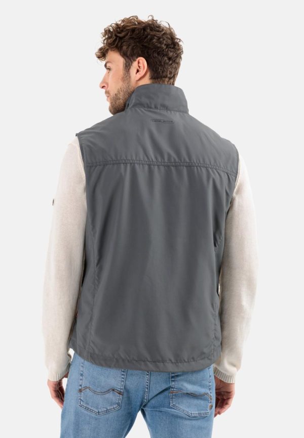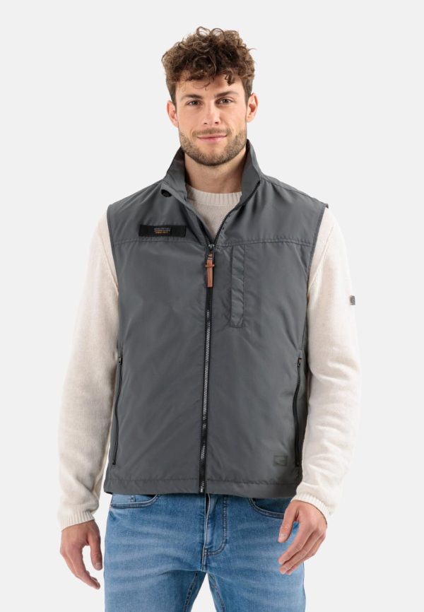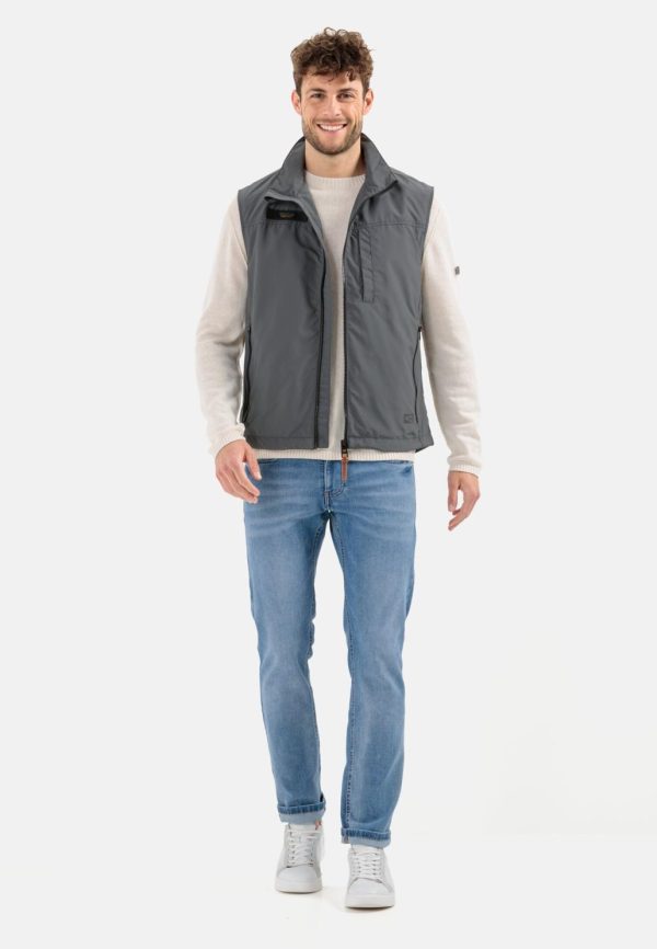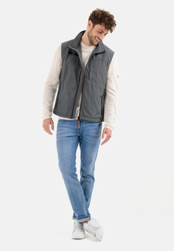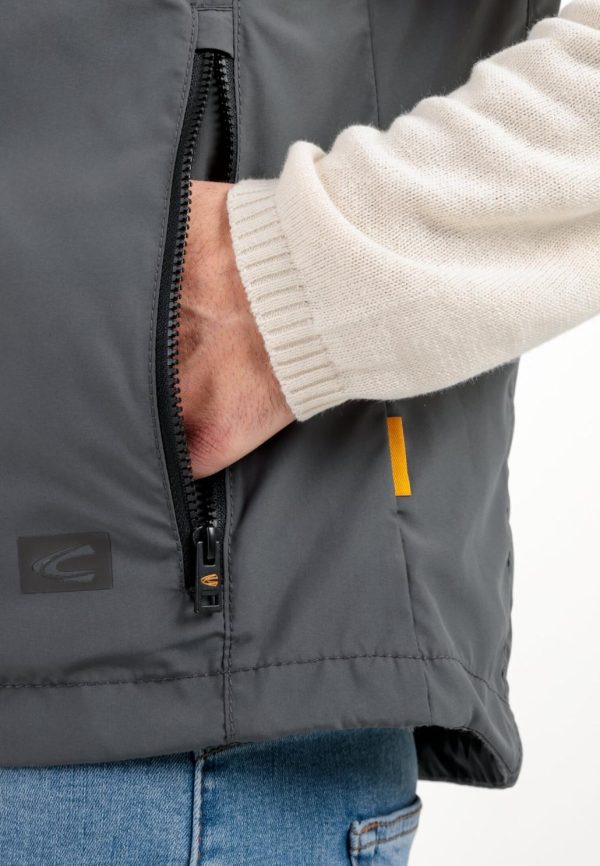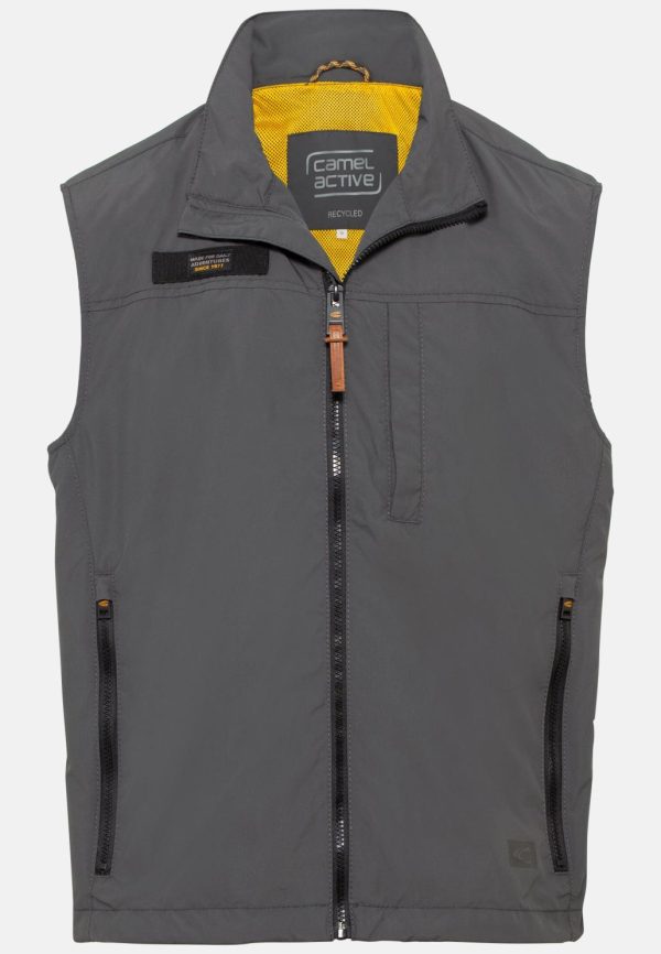 Diese funktionale Herrenweste aus recyceltem Polyester vereint sportlichen Komfort mit praktischer Alltagstauglichkeit. Das robuste, pflegeleichte Gewebe überzeugt durch seine glatte Struktur und eignet sich optimal für Outdoor-Aktivitäten und den täglichen Einsatz. Praktische Ausstattungsmerkmale umfassen eine seitliche Eingrifftasche sowie eine sichere Brusttasche mit Reißverschluss. Durchdachte Details wie der belüftende Mesh-Einsatz im Inneren und die integrierte Einrollkapuze erhöhen den Funktionswert. Markentypische camel active Logos sind über dem linken Saum und auf der rechten Brustseite angebracht.